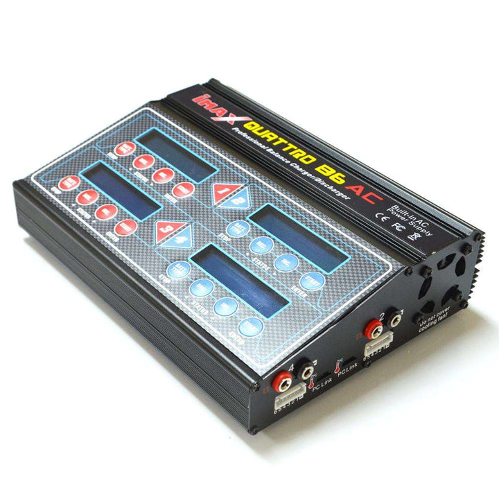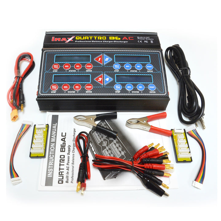 QUATTRO B6AC allows you to plug 4 batteries into one charger simultaneously.