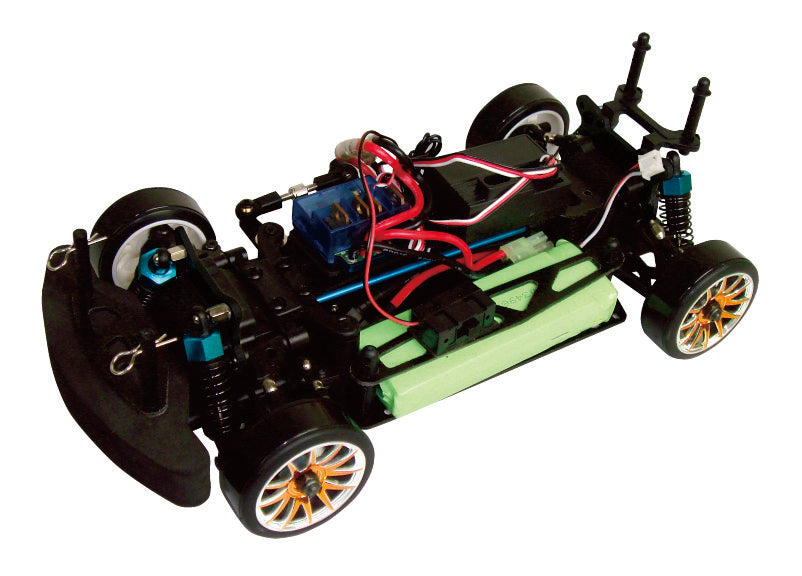 This RTR Drift car is electric powered and perfect for indoor or outdoor drifting. Based on our popular and durable on road electric powered car , this drift version adds specially designed solid compound drift tires pre-mounted high performance wheels. This RTR Drift car is 4WD for consistent drift action on a wide variety of surfaces, easy to drive, and has all of the features you need to adjust for a perfect drift set-up: camber, toe-in, body level, etc.