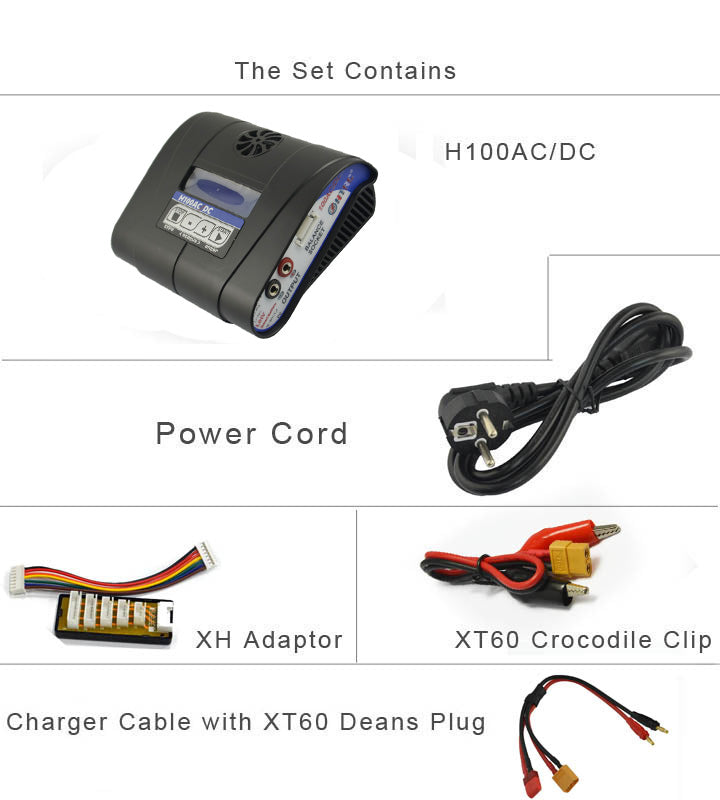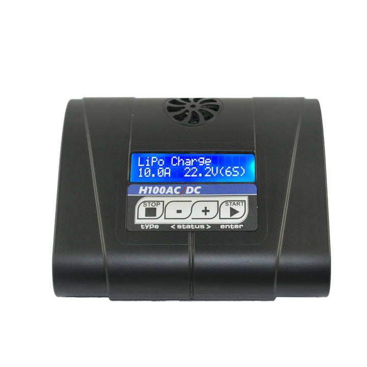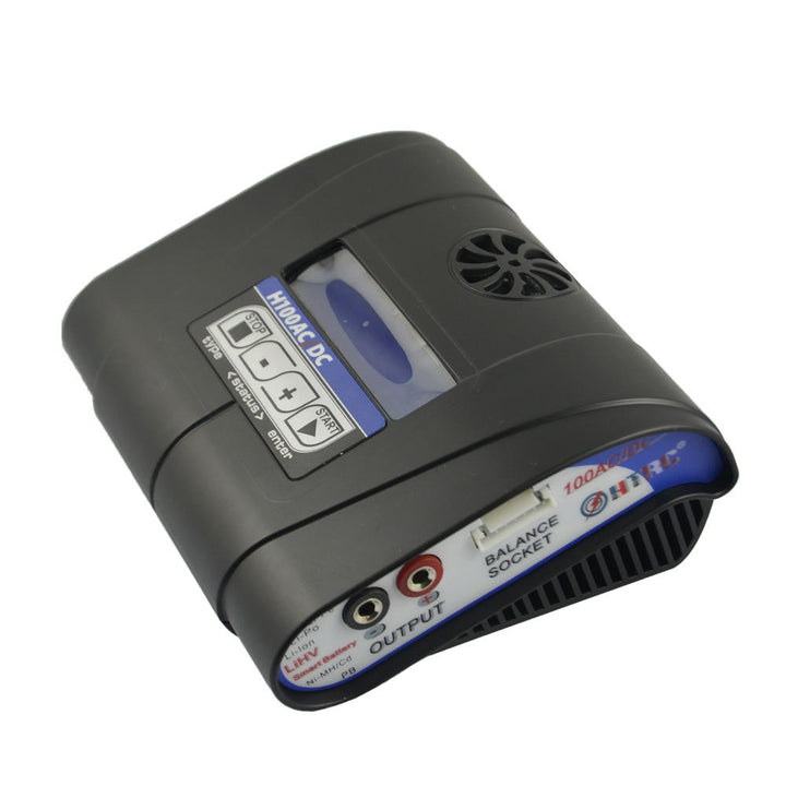 HTRC H100 AC/DC is a digital intelligent multi-functional charger which support LiPo/LiIon/LiFe/NiCd/NiMH PB batteries,high power battery LiHV and smart battery I,II,III. Max charger power 100W, max charge current 10A with high charging efficiency.