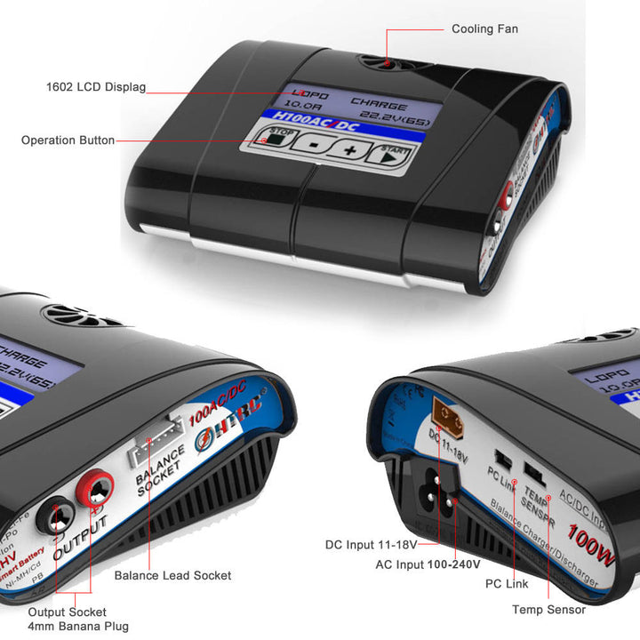 HTRC H100 AC/DC Multi-function RC Toy Lipo Battery Balance Charger/Discharger 100W 10A for Lipo Lilon LiFe Ni-MH Ni-CD Battery