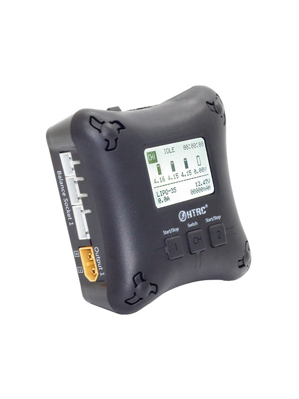HTRC H4AC DUO is a mini multi charger with 2 independant output port wich can charger 2 lipo battery simultaneously.