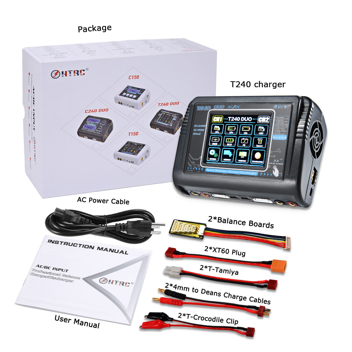HTRC Lipo Charger 1-6S Touch Screen Dual Discharger AC150W DC240W 10A T240 Fast Balance Battery Charger for RC Li-ion Life NiCd