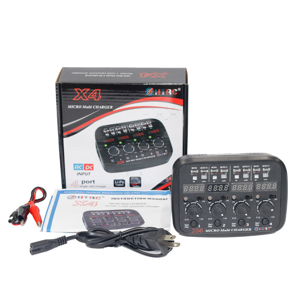 HTRC X4 1S Multifunction Lipo/Lihv Micro Multi Battery Charger Quattro AC DC 100-240V 24W 1.5A LED And Audible Sound Indicate