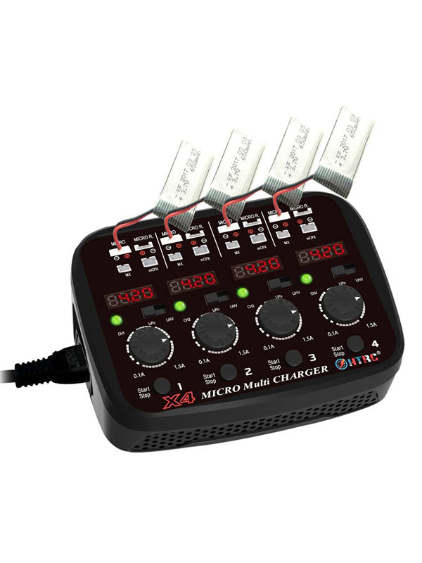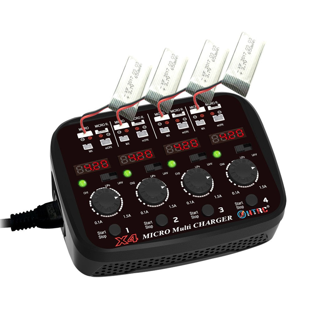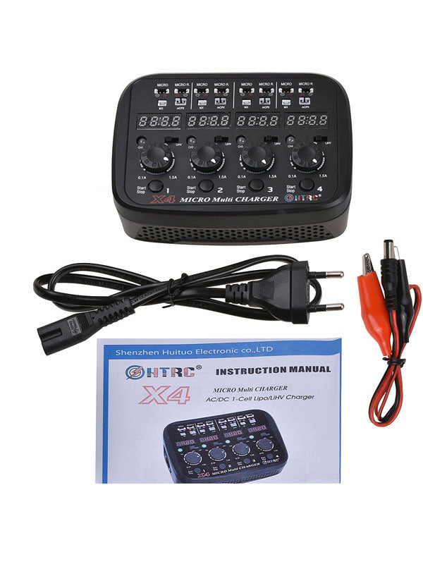 HTRC X4 AC DC 4x1s Quattro 100-240V 24W 1.5A Lipo/Lihv Micro Lipo Battery Balance Charger LED And Audible Sound Indicate