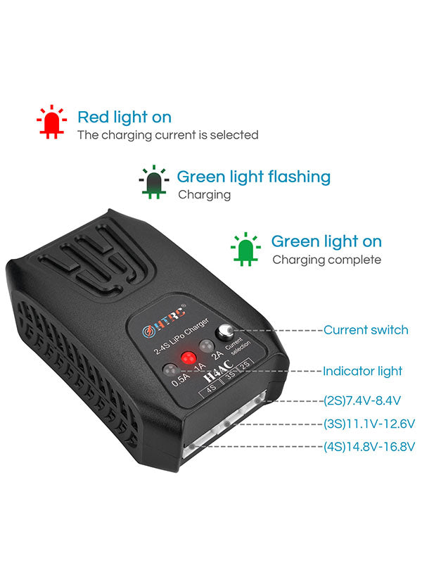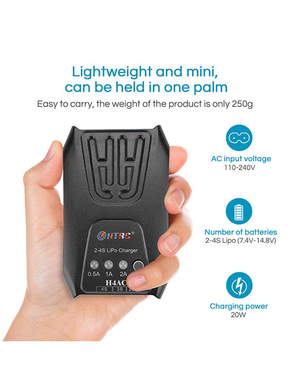 Lipo Battery Balance Charger HTRC H4L 20W Mini Charging Balance Charger For 2-4s Lipo/LiHV Battery Pocket Type Charger