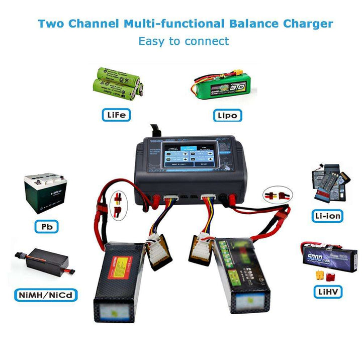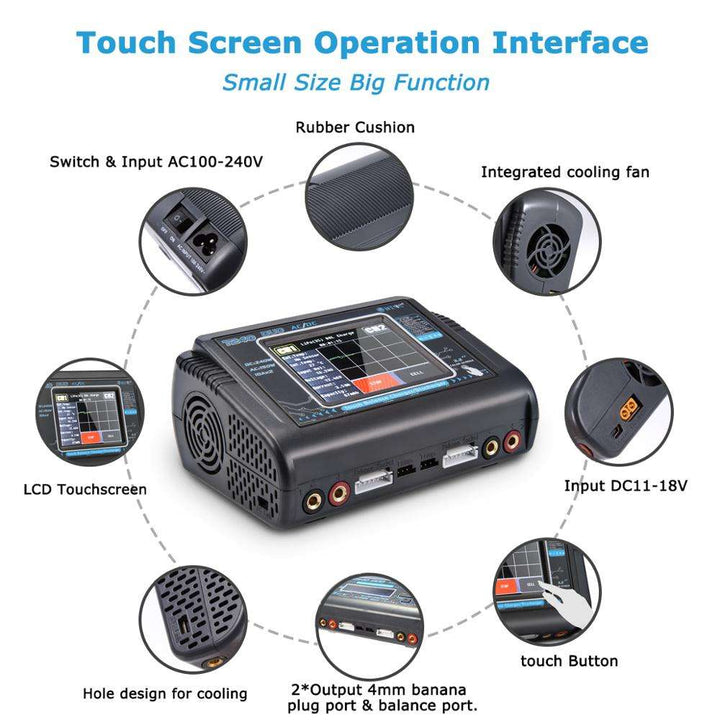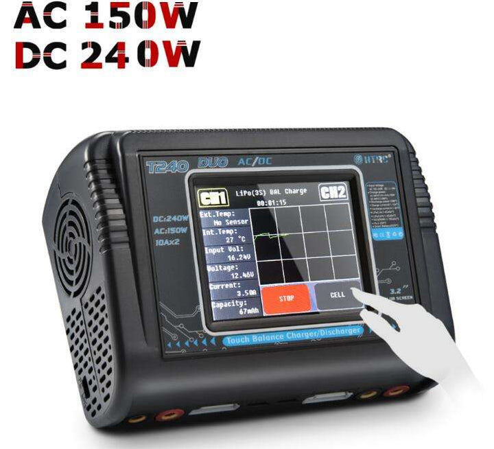 Lipo Battery Charger Touch Screen Dual Balance Discharger Duo AC150W DC240W 10A T240 1-6S RC Li-ion Life NiCd NiMH LiHV PB