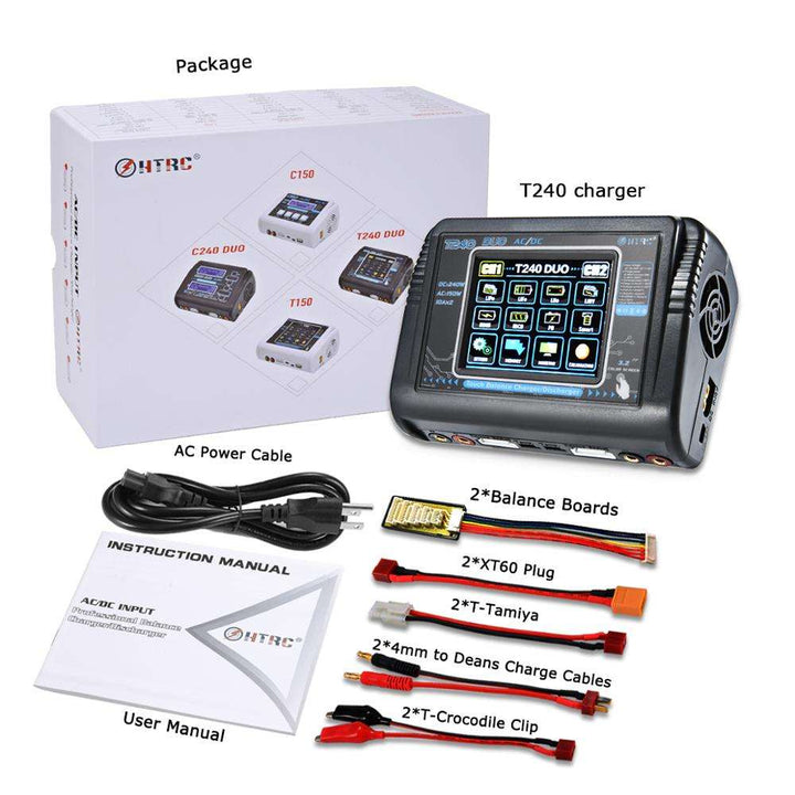 New HTRC T240 AC/DC DUO RC LiPo Battery Balance Charger Discharger Touch Screen Dual Channel AC150W DC240W 10A for RC Model Toys