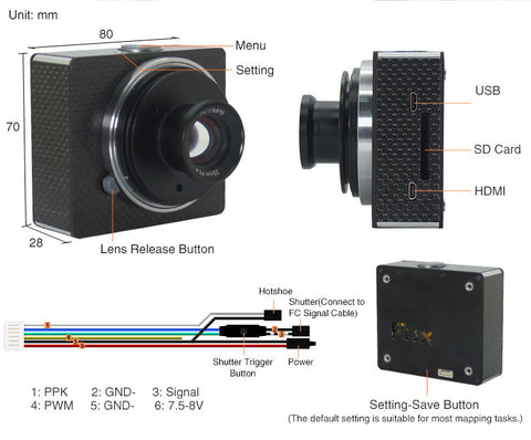 3. With the light weight and small size, Foxtech Map-01 camera can be easily integrated into UAVs and airplanes to do mapping jobs. It could be connected with PPK system to ensure a centimeter-level accuracy of mapping and survey through a Hot Shoe signal. |