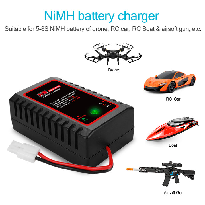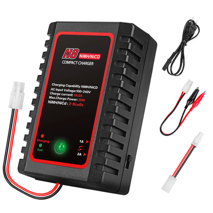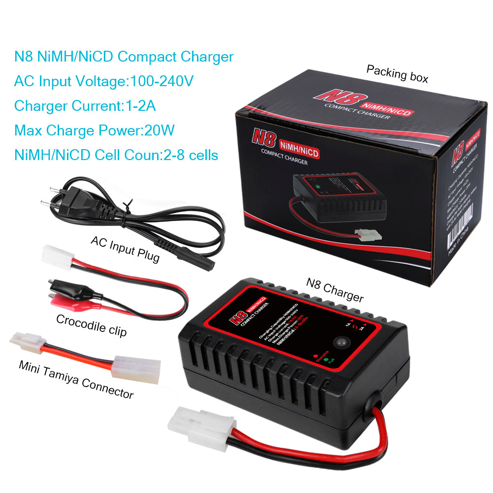 NiMH Charger, AC 100-240V Output N8 20W 1A/2A Battery Chargers with Standard Tamiya Connector for 2-8S2.4-9.6V Drone RC Car