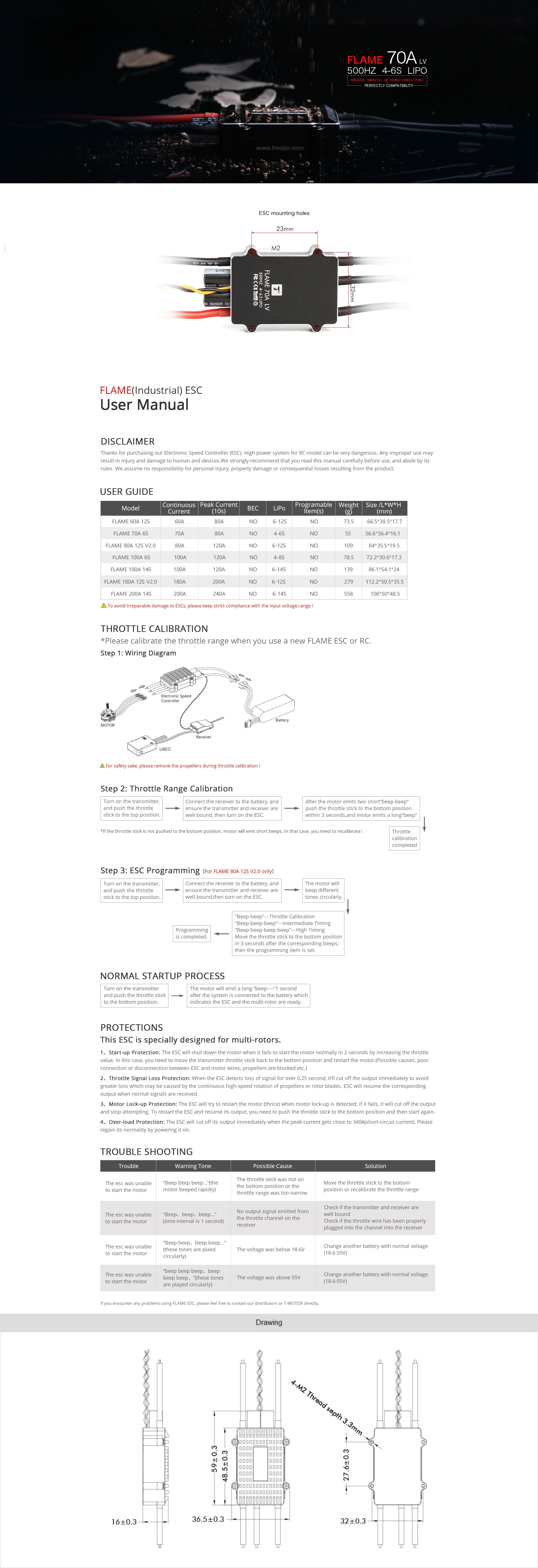 T-MOTOR FLAME 70A LV Brushless ESC 4-6s drone speed controller for Brushless Motor