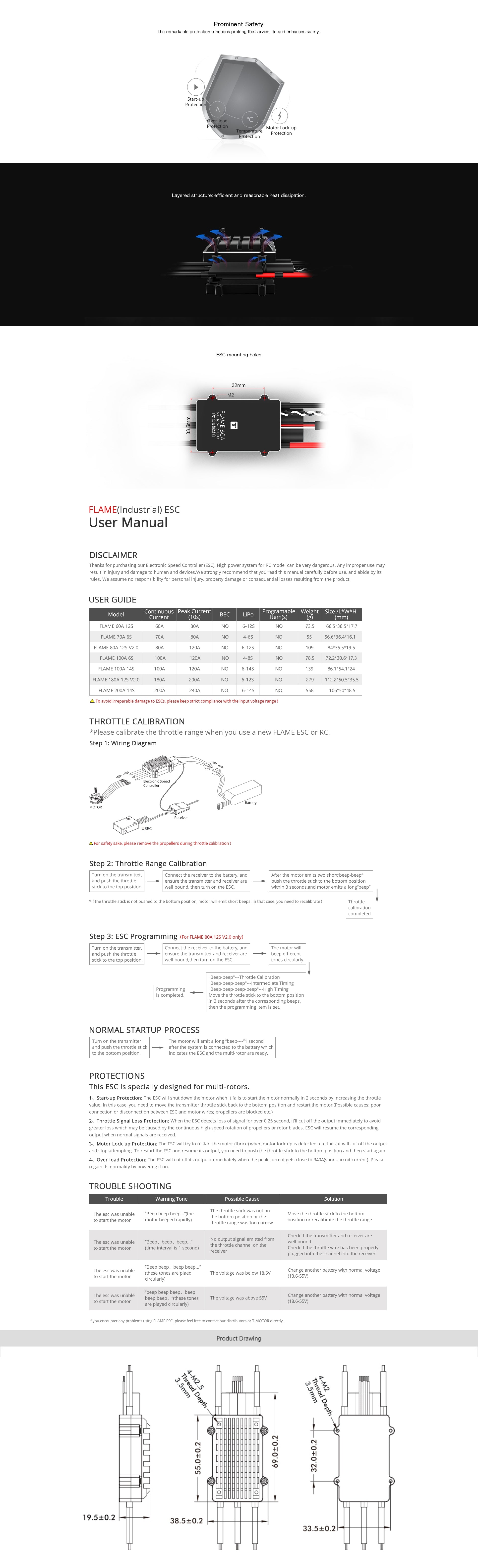 T-MOTOR Flame series ESC 60A HV 6-12s 600HZ Agriculture Plant quadcopter helicopter Brushless Motor ESC