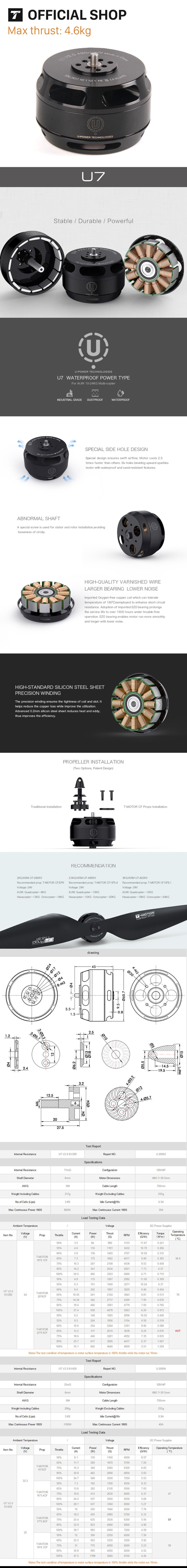 T-MOTOR U7-V2.0 low noise stable quality 5kg payload multicopter outrunner brushless motor