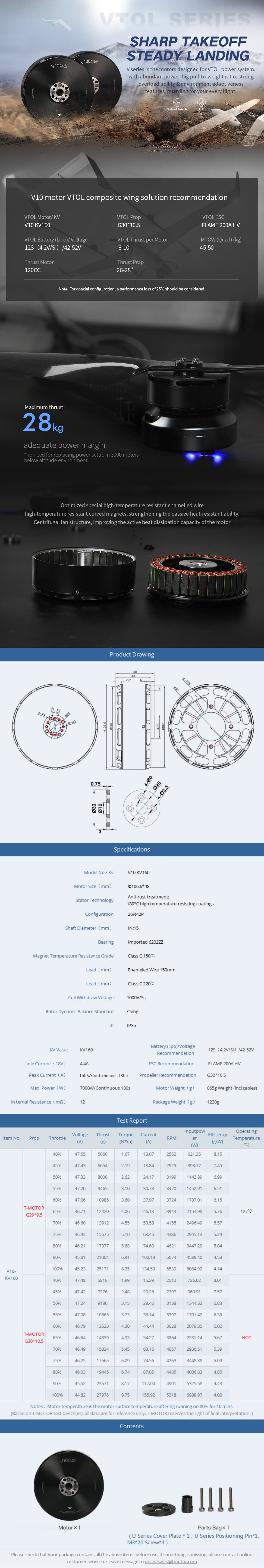 T-MOTOR V10 KV160 High Performance Powerful electric vtol Brushless motor